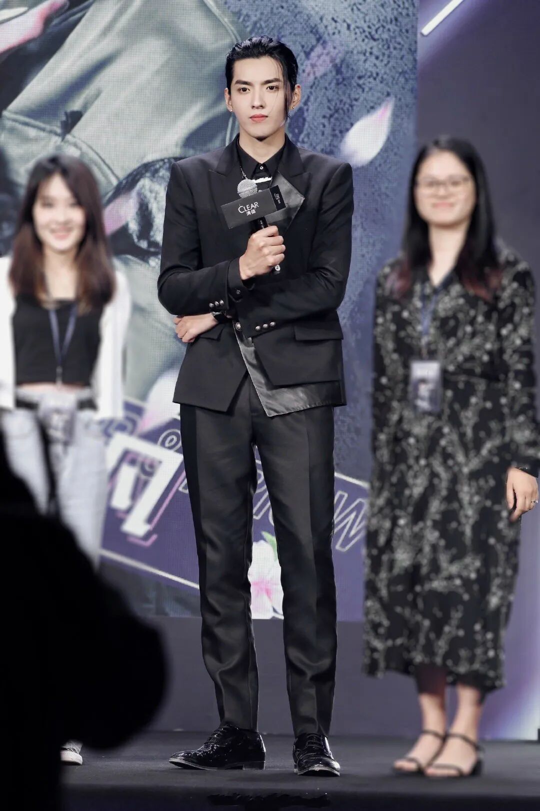 而吴亦凡以黑衬衫,黑皮鞋等全黑色来搭配,在高挑身材的驾驭下,再配合他的马尾发型,高贵与酷帅在这一刻融为了一体。