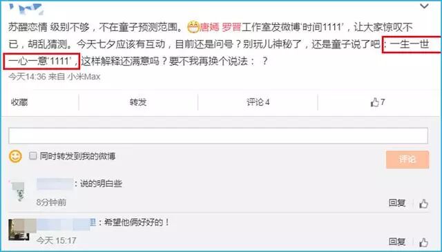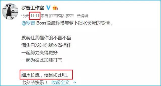 但是在昨天中午,罗晋官方工作室发布的一条“撩粉”动态,却意外的挑动了CP粉们的敏感神经,工作室发布动态的配图是罗晋自己独身一人的型照,但是发布此条动态的时间却特意选在了“11:11”这个具有特殊含义的时刻,众所周知,这个数字意味着“光棍数字”,在七夕的日子中,官方V博却弄出了这样的数字,真是无法不让人多想!