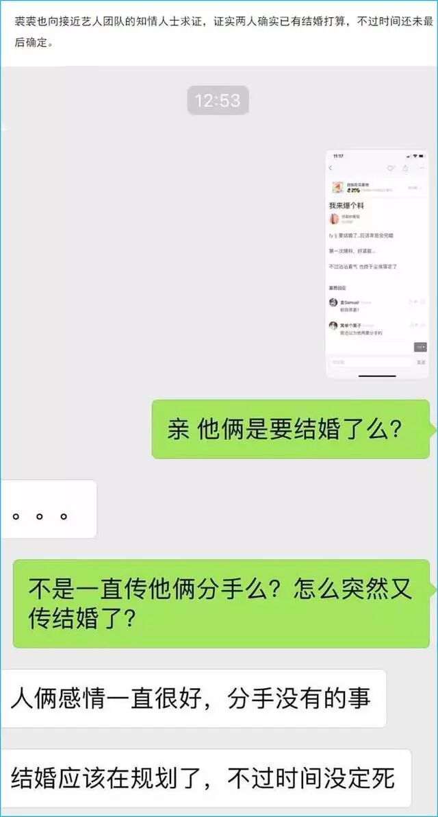 而且,还有娱乐记者曾经向接近艺人团队的知情人求证,结果得到“两个人其实已经快要结婚了,不过时间还未最后确定”的消息。