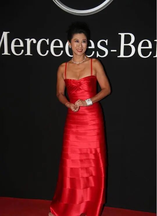 裙装的版型比较修身,勾勒出她的纤瘦腰肢和身材曲线,不得不说60岁的叶倩文身材保持得依然很好,腰部腹部没有发福变形,毫无赘肉感,不知道她是怎么保养的呢?着实令人羡慕了。裙装是细吊带一字肩造型,露出胸口肤色,及香肩和精致的锁骨。女人适当的露出肤色,可以显出妩媚气质,60岁了依然可以大胆奔放,散发出暗香流韵的气质,辣眼吸睛。红色吊带裙采用千层横条设计,就像是纱布缠绕裹身,勾勒出叶倩文的身材廓形。裙摆拖地,拉伸了她的大长腿比例,修饰出她173cm的高挑个子,显出上短下长的模特身材,煞是好看。