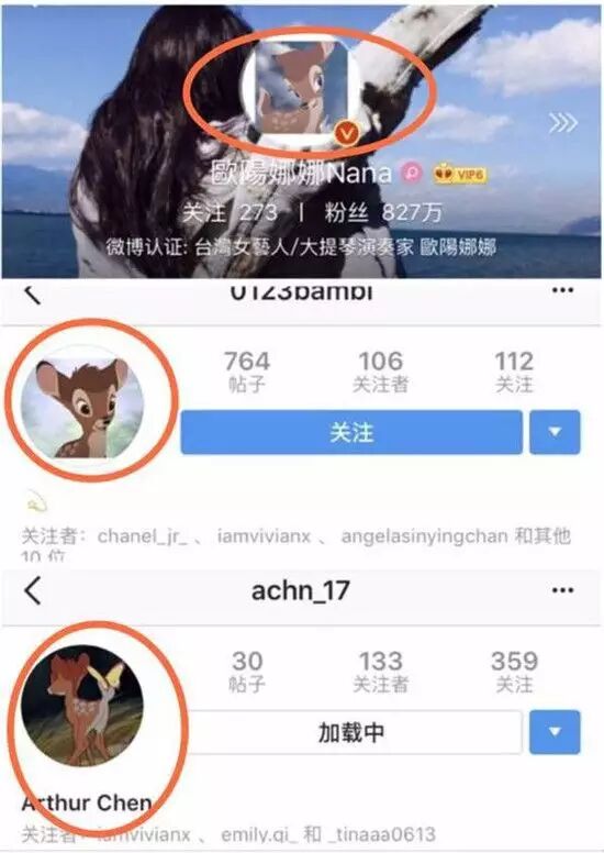欧阳娜娜的微博、IG小号,陈飞宇的私人IG的头像都是小鹿斑比。看起来俨然热恋中换上情侣头像的小朋友嘛~~这一点范冰冰和李晨一定深有体会。