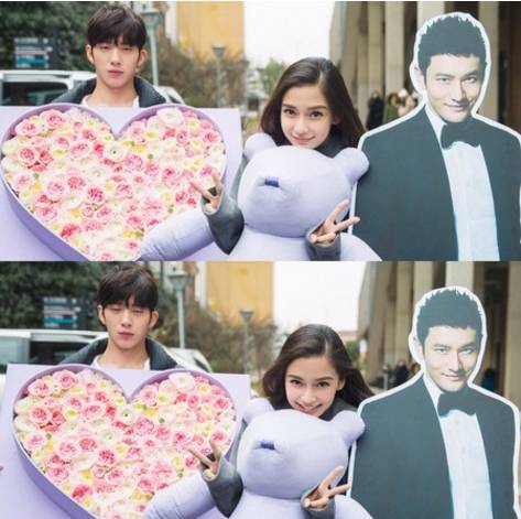 不能亲自去剧组探班,就送上“黄晓明1:1的人形立牌”给Baby,同在剧组的井柏然看到这虐心一幕,只能翻着白眼表示:气sei呢这是。Baby之后还拉着井柏然合照,不过,照片中Baby是笑靥如花,井柏然默默捧着黄晓明送给Baby的花儿一脸的生无可恋。