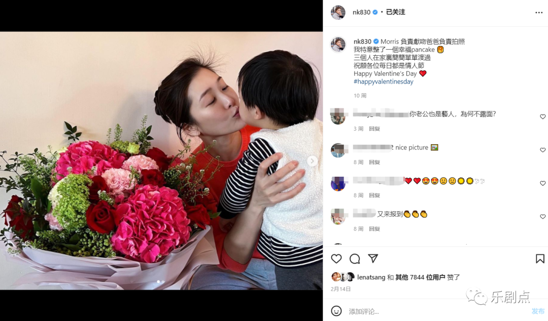 比如情人节的时候,周丽淇上传了没有傅程鹏出镜的母子合影,并留言透露老公负责拍照,一家三口简简单单在家里过节。