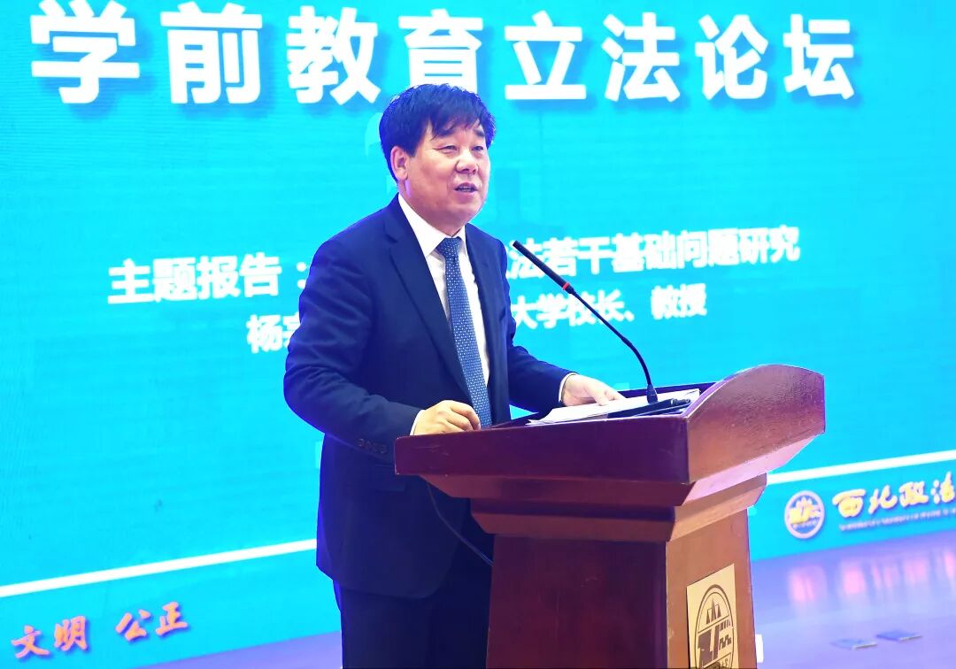 西北政法大学校长杨宗科教授首先以《学前教育立法若干基本问题》为题进行主题报告,他分析了《学前教育法》立法当中五个基础性问题:一是立法的基本依据;二是立法基本条件;三是《学前教育法》的基本价值追求、价值导向;四是基本主体,强调基本主体一定既要明确,也要符合十八届四中全会强调的民主立法、科学立法、依法立法;五是基本政策的推动,学界在《学前教育法》的价值选择、基本原则、形成共识的基础上,要善于把论文变成建议,把更多的建议最后变成决策,把更多的决策变成法律文本。