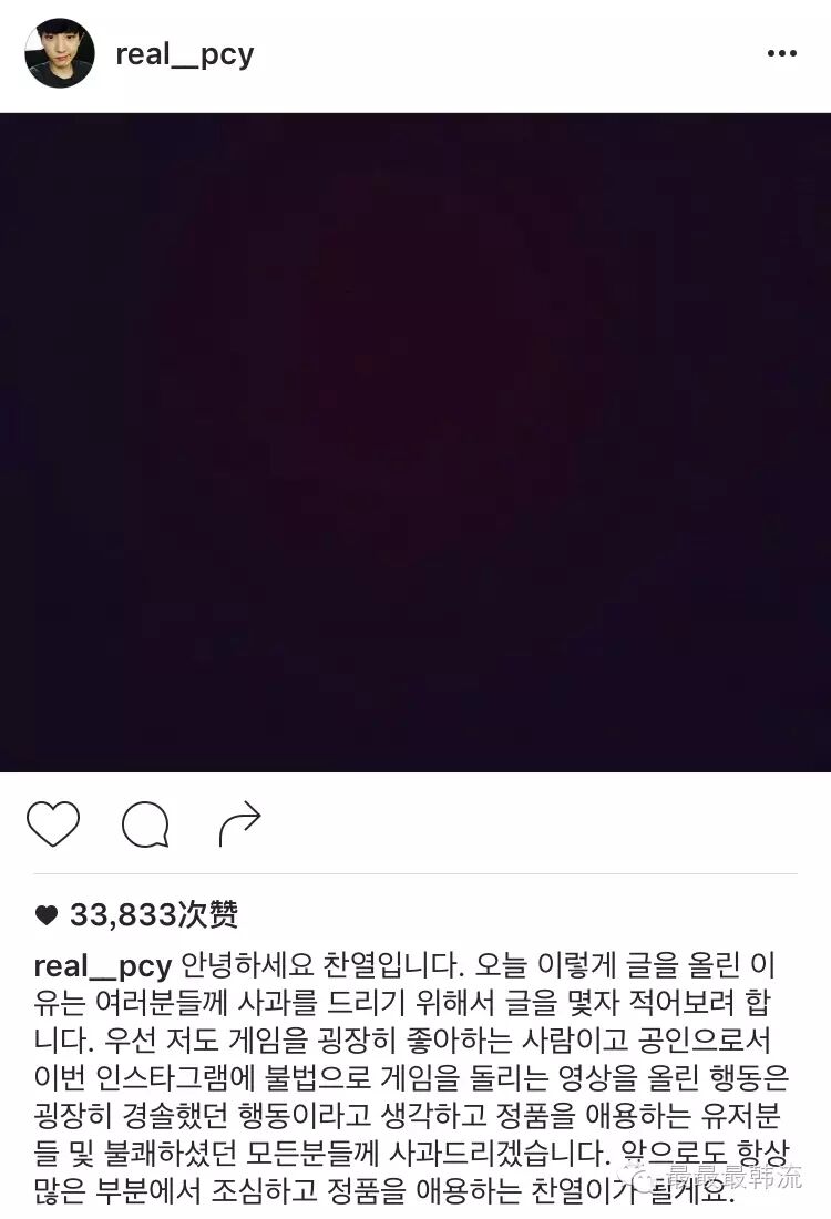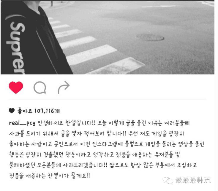 因为翻译还是很长嘛,所以这里我帮你们总结一下重点:我作为公众人物上传盗版的游戏真的很抱歉,以后我会更注意,成为更好的灿烈。