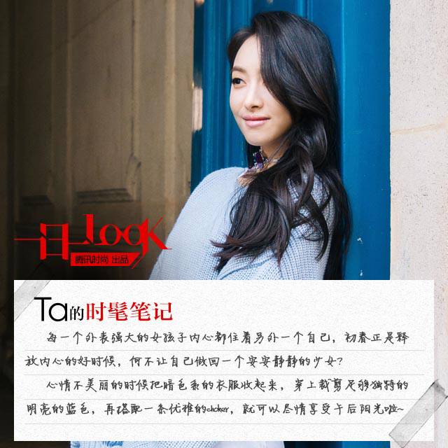 一、【宋茜水晶蓝花边毛衣享受午后阳光】