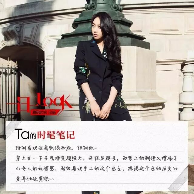 造型解析:刺绣西装、长裤:Stella McCartney包:Delvaux 鞋:Christian Dior