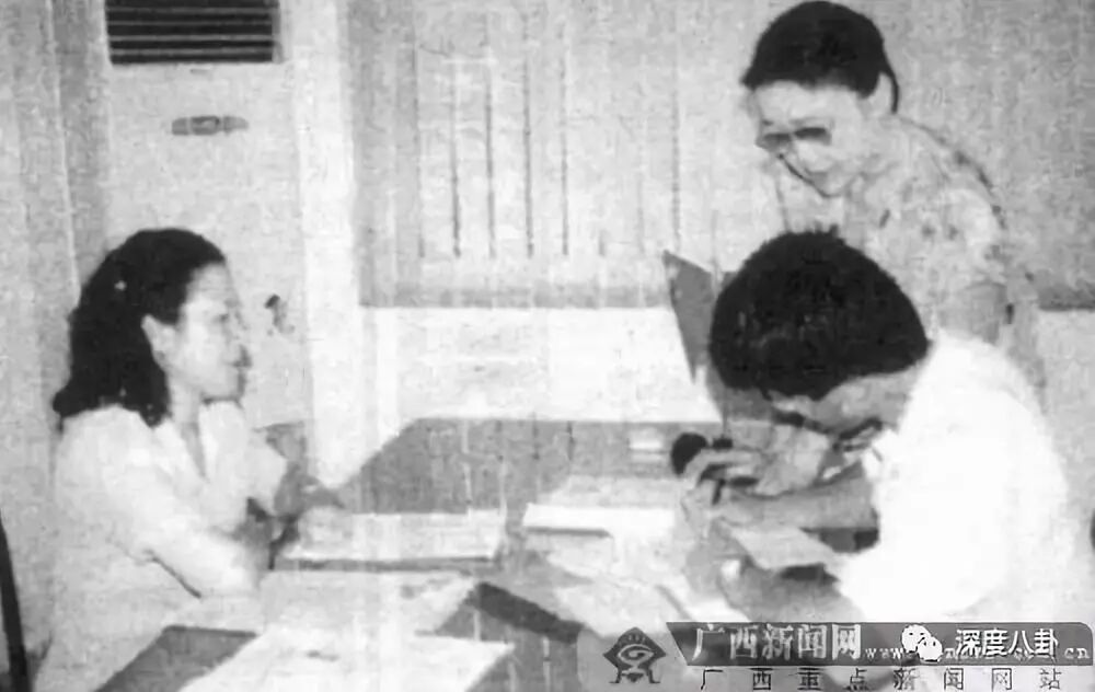 图为正在办理收养手续的陈冲母亲和陈冲丈夫