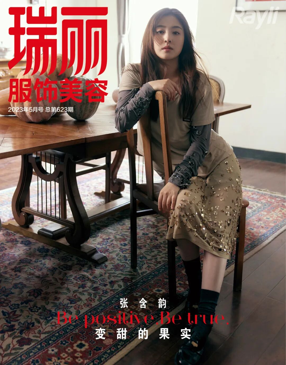 张含韵|变甜的果实 瑞丽服饰美容 内地女星 2023-05-03 18:00:15 824 创作不易,用心坚持,欢迎请BaGua喝几杯爱心咖啡!打赏并支持本文 打赏并删除本文 灰色钉钻上装/Miu Miu。“雨晴风暖烟淡,天气正醺酣。”雪融之后,万物复苏,一切似乎又迈向了新的轮回。4月,春天已留下众多痕迹—枯萎的草重新长出嫩芽,青绿的树叶慢慢爬满光秃秃的树干。生于4月的张含韵,身上也有着春日温和的性格与不断生长的生命力。短袖衫、半身裙/均为FIVE PLUSMISS ROSE玫瑰小姐520告白款。廓型西装、弹力背部镂空长裙/均为TOD'S,阿古屋珍珠项链、comet plus项链/均为TASAKI。被问及今年的生日要怎样过时,张含韵表示自己不是很有仪式感的那一派,不会为了生日特意去做些什么。“大概是过了20岁以后,我过生日就更喜欢简单地吃块蛋糕,吹蜡烛就是最大的仪式感。对我来说,有家人陪伴就很满足了。”对生日那种欢欣的期待,已随着成长和工作而渐渐淡化,留在了她懵懂的孩童时期。现在的她把生日这天当成稀松平常的日子,有家人在旁、吃着简单的家常小菜就能让她觉得幸福。因为正值《爱很美味》电影宣传期,张含韵今年的生日只能在工作中度过,以忙碌的形式承前启后迎来了新一岁。作为电影《爱很美味》的主演,张含韵的4月几乎都以此为圆心活跃在镜头前。电影延续了电视剧的剧情,在影片中张含韵所饰演的方欣,正欲在事业上发力时却意外怀孕,孕期的生理反应和工作上的忙碌、挑战成了方欣不得不去破解的难题。显然,方欣的故事既是很多个“她”的故事,也可能会打动、激励很多与之有着相似经历的“她”。作为饰演者,与角色有了亲密相处后,她觉得最打动自己的就是方欣的性格,她说:“方欣除了外表的优势以外,生活其实也是一地鸡毛,没有什么光环,她总是会被推到人生两难的选择时刻,不得不面对现实去做出选择。”这时的方欣不是选择气馁,而是鼓足劲开始朝着目标前进。方欣如此,活跃在镜头前、享有万千喜爱的张含韵也是如此——会迎接“突如其来”,也会硬着头皮去面对、去解决,除了一地鸡毛,也有无数看不清前路的迷茫。好在,一切都朝着更为积极的方向发展着。“0403988”,一串普通的数字却在2004年的夏天扣开了张含韵人生的另一扇门—成为《超级女声》的季军,继而一句“酸酸甜甜就是我”风靡全国,在许多人心中留下了甜美可爱的印象。短袖衫、半身裙/均为FIVE PLUS MISS ROSE 玫瑰小姐520告白款,镜面玛丽珍高跟鞋/Sergio Rossi。廓型西装、弹力背部镂空长裙/均为TOD'S,阿古屋珍珠项链、comet plus项链/均为TASAKI。回看这个所谓的出道“巅峰”,张含韵坦言:“对一个逐梦的小女孩来说,迈出勇敢的那一步就可以算是她当时的人生巅峰了;对行业来说,这可能仅仅是一个历史现象。对我来说,现在人生还没过完,谁又能知道最终的巅峰是哪一刻呢?”在她的认知里,以前的成就再亮眼也只是昨日之光,巅峰则会在尚未经历的未来里出现。从火爆的少女偶像到渐渐淡出观众视野,这样的落差并未让张含韵就此消沉,她反而去中戏当了插班生学习演戏。正是这段学习经历,让她在日后得以通过演员的身份再次活跃在镜头前。《兰陵王妃》里她把元清锁的美好灵动拿捏得恰到好处;《知否知否应是绿肥红瘦》中盛淑兰一角戏份虽不多,但和离时的悲愤让人感同身受;而今她带着参演的新电影《爱很美味》四处宣传。那些无人知晓的漫长时光或时有不解、迷茫和不甘,但历尽千帆后张含韵的心境反而更通达。心境的变化带来了个人的自由与明媚,她步履不停,不断磨炼唱功,雕琢演技,学外语,练配音,从未放弃过自己。“人间四月芳菲尽,山寺桃花始盛开”,花期不同,各人有各人的精彩。在张含韵的故事里既有出道时的惊喜与昙花一现的绚烂,亦有千帆过尽重新开始的精彩。人间四月天,我们在温和的春日里相见、交谈,在张含韵的分享与谈吐里,总让人感受到这个季节独有的温柔与万物生的蓬勃朝气。“年年岁岁花相似,岁岁年年人不同”,春已至,小花正在开……灰色钉钻上装、啡色短袖上装、啡色无袖上装、钉钻半身裙/均为Miu Miu。短袖衫、半身裙/均为FIVE PLUSMISS ROSE 玫瑰小姐520告白款,镜面玛丽珍高跟鞋/Sergio Rossi。Q.都说“岁月如歌”,你会为即将迈入35岁、迈向40岁的自己设置什么背景音乐呢?A.我不太习惯给人生提前做设定,通常都是在听到某首歌后才惊觉很契合自己某个时间段的情绪,所以大概50岁再来问我,我应该会有答案。Q.似乎人一过30岁就会不自觉地以5年为一个单位被冠以某种意义,明年你就会站在35这个新5年的开端,你希望自己的35岁会是怎样的?会有年龄焦虑吗?A.我没有这种不自觉。我认为能过好一天是一天,给予太多设定反而容易失望。我觉得在这方面试着学会给自己松绑可以尽量减少一些焦虑。Q.你觉得自己在面对不同的声音、面对名利和成败时的心态是不是你还能保持青春、少女状态的重要原因?A.首先少女状态都是褒奖,我顶多算是个30+的独立女性。面对名利或是成败,其实都是面对自己内心需求的真实选择。我也经历过懵懂或是拧巴的阶段,正是因为经历过了,也找寻到了和自己妥协、自洽的最好办法,作为30+的女性我觉得这样很好。Q.你是习惯复盘的人吗?A.不是。前阵子刷到一个科普说容易快乐的人都不太喜欢记忆反刍,会更多地向前看。灰色钉钻上装\