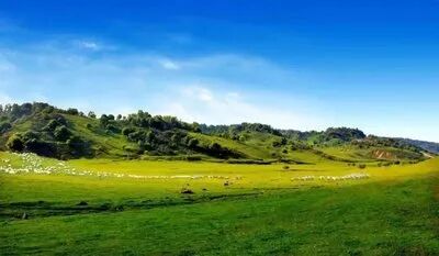 羊群岭脚悠闲啃,雁聚峰头自在飞。
