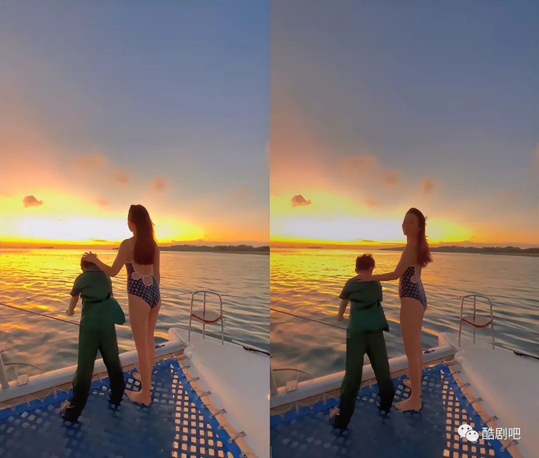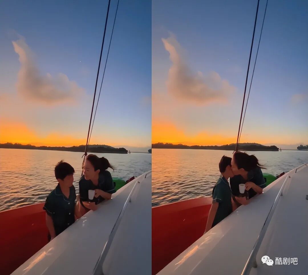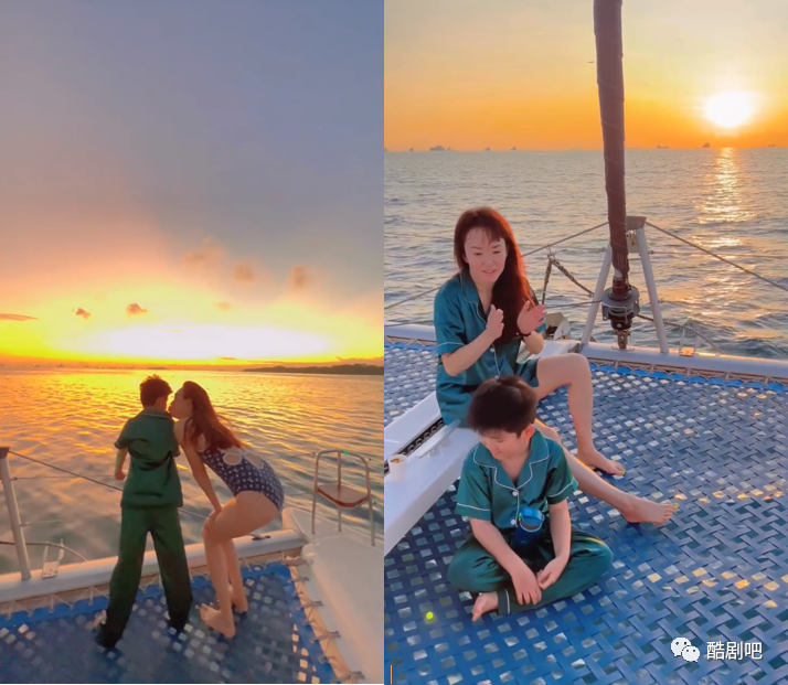 范文芳依靠在游艇的栏杆上,手举着咖啡,一脸宠溺地看着宝贝儿子,忍不住地亲了好几口儿子的脸颊,对于这个宝贝儿子的疼爱程度可见一斑。而儿子也很依赖地把头埋进妈妈的怀里,母子情深的画面让大家感动。
