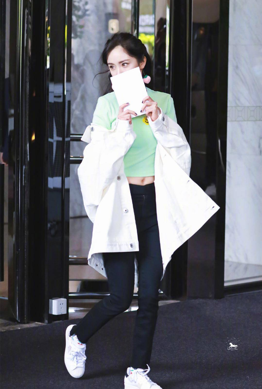 杨幂的身材是真的好,不仅仅是瘦,而且比例也是很不错的。穿着紧身的绿色的衣服搭配黑色的裤子。特别的有少女感了。这个身材是真的好,也特别的苗条。