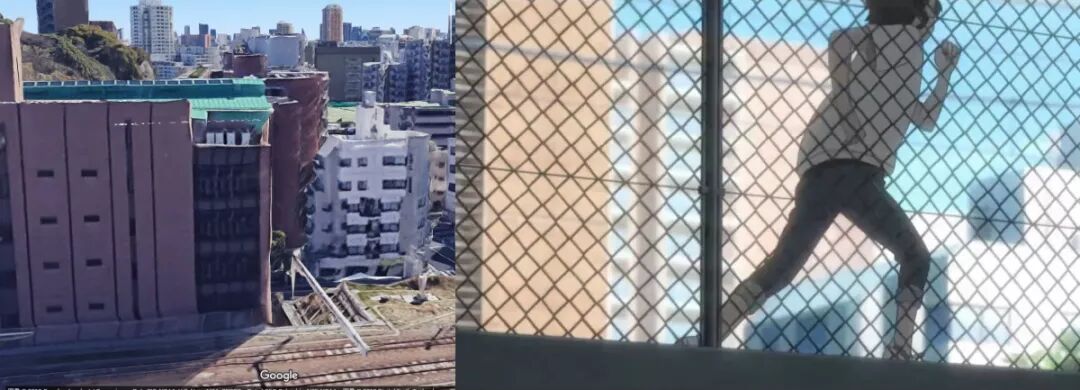 暂且不论违反了多少法律(进入铁路线涉嫌违反铁道营业法第三十七条),也不用追究为什么铁路工人无人阻拦(金主的力量)估计有很多人像我一样好奇帆高在这一段里究竟跑了多远。打开GoogleEarth(片中的地景制作也有用到Google Earth Studio),从池袋西口的警署到代代木会馆,经过的铁路必然是山手线和山手货物线(埼京线),从池袋到目白,铁路逐渐从地下转变为高架,沿途搜寻,不难发现夏美飞车经过的阶梯就是目白站前的银铃坂。