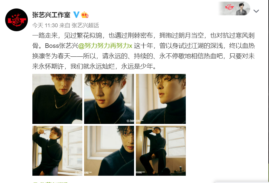 我想张艺兴对于这十年做到了问心无愧,未来坦然前行。