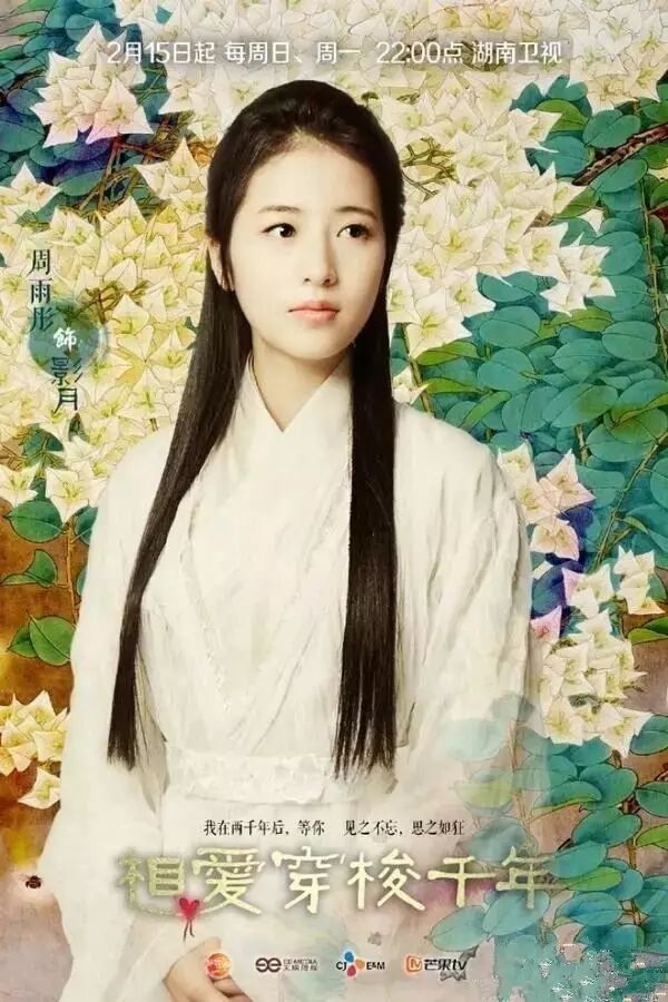出道首部作品就是在芒果台热播的《相爱穿梭千年》,她在里面演女二,但无奈井柏然、郑爽的主角光环太重,再加上当时对“正经夫妇”的热捧,周雨彤的存在感并不是很高: