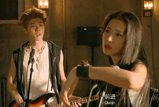这次她的角色就炮灰多了,甚至连名字也没有,是鹿晗所在乐队的主唱,大家都管她叫学姐: