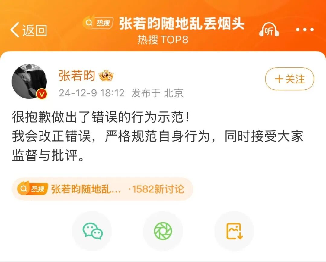 此前,有媒体报道称张若昀随地乱丢烟头,相关话题冲上微博热搜,引发网友热议。