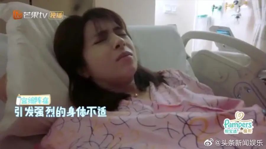还有同节目里的麦迪娜,同样因为宫缩的痛苦,不断挣扎、难受。