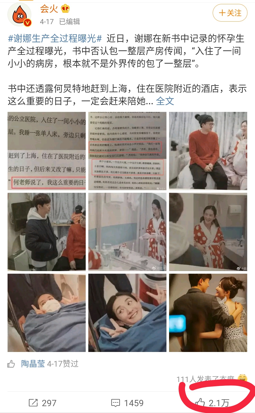 前几天,谢娜在新书里记录她生产过程的部分,在网上火了,秒获20000+的赞。