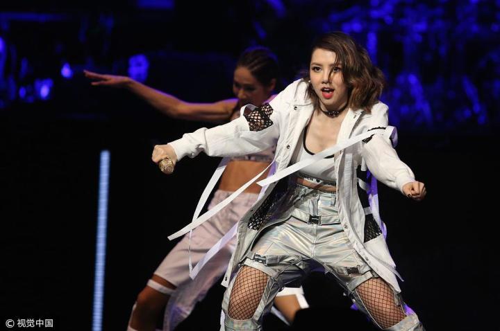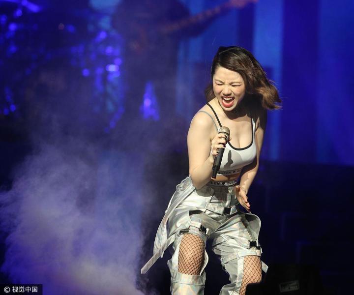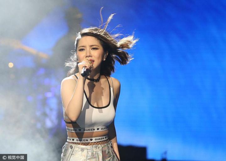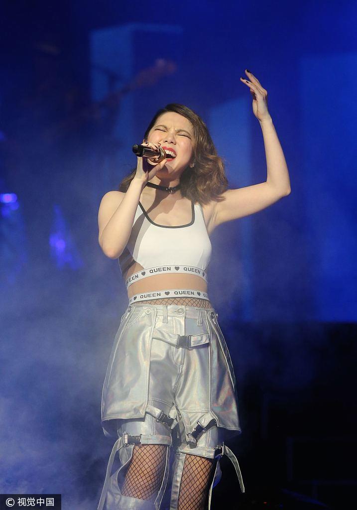 2017年10月5日,澳大利亚珀斯,邓紫棋举行演唱会。邓紫棋身着深V高叉裙卖力献唱秀美腿。现场换多套演出服装,她穿白色吊带一展傲人上围,自带鼓风机玩“怒发冲冠”,尽情嘶吼变咆哮哥。