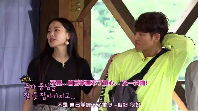 随后在跳舞环节,胜利模仿了李珠妍在女团时候的舞蹈。李珠妍来了兴致,她很自然的就把手搭在了金钟国的肩膀上,这个动作被刘在石看到了,大神立刻说他感到很惊讶,李珠妍第一次见金钟国居然敢做这种动作。李珠妍听到大神这么说她也有些不好意思,一边把手搭在金钟国肩膀上做了一下刚才的舞蹈动作,一边解释说是因为站不稳所以才这样的。不过说完这句话后,她立刻用两个手又掐了一下金钟国的胳膊,慨叹道:“特别硬啊!”这一下把大家都逗笑了,金钟国更是慌了!