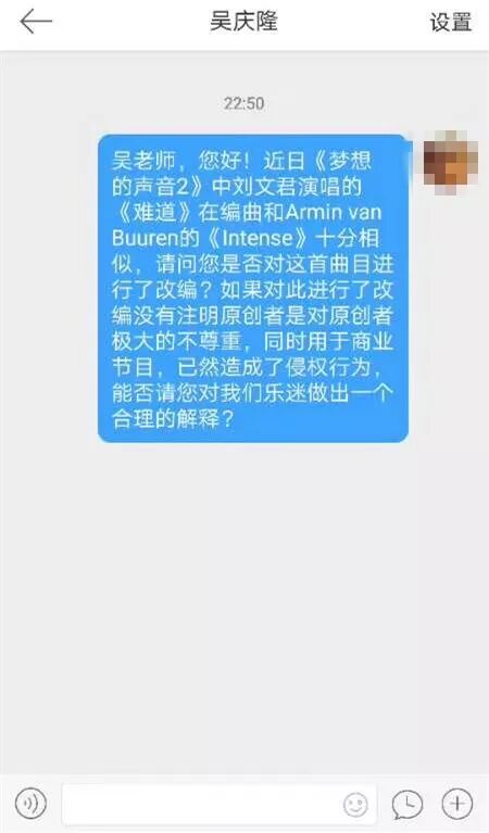 近段时间,浙江卫视“梦想的声音”中,刘文君的《难道》被指出有极高的抄袭嫌疑。排除人声之外,整首单曲Instrumental部分,基本上可以认定为对Armin van Buuren的《Intense》的“高仿”产物。约等于Remake后加了个人声。