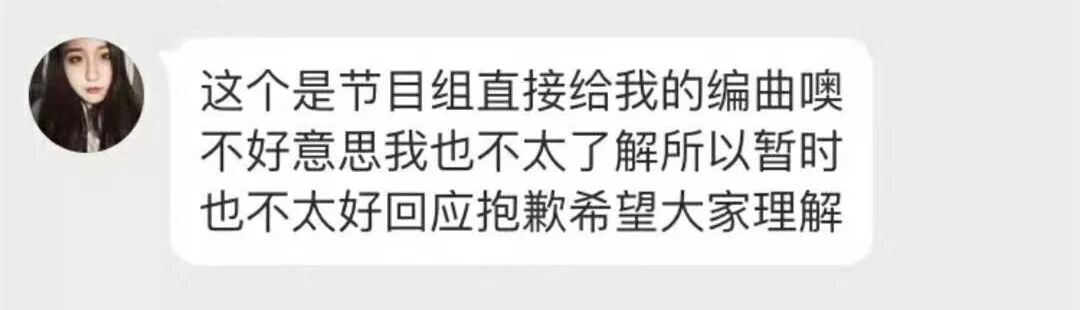 愤怒的乐迷第一时间除了指责节目组以外,也有很多人找上了歌手“刘文君”,对其彻头彻尾地一段谩骂。但客观来说,刘文君的态度十分端正,明说了自己并没有参与音乐制作,也完全不知道制作上抄袭的事,音乐是节目组做完之后给她的。