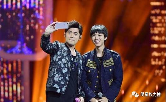 不仅和偶像周杰伦同台,俩人还在现场玩起了自拍↓