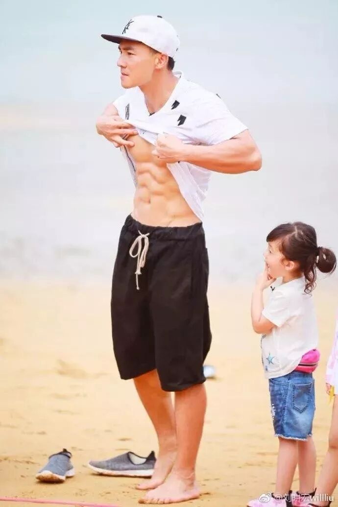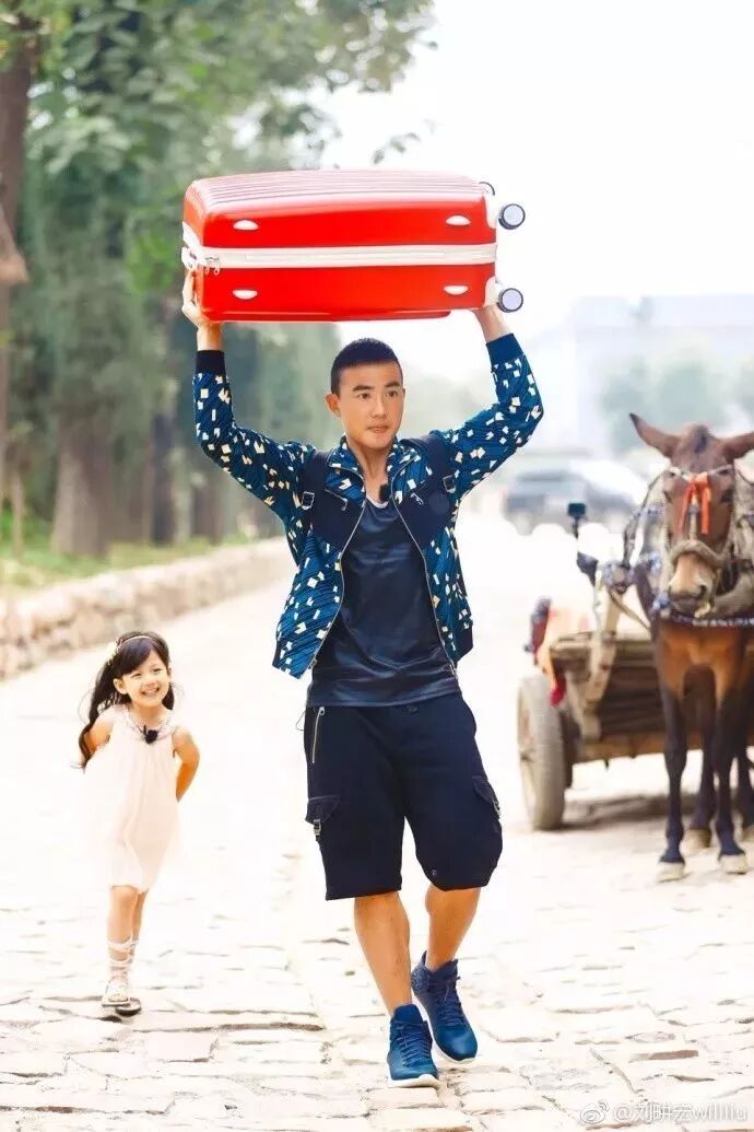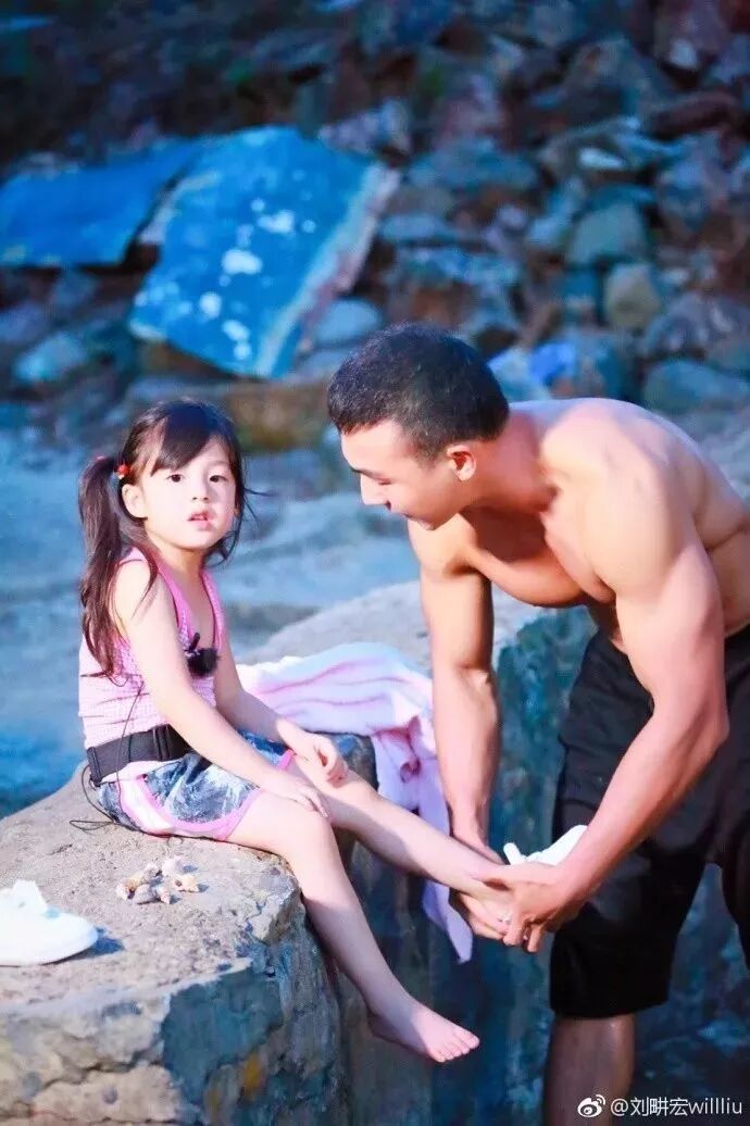 刘畊宏这次在《爸爸去哪儿》中也是身材和力量担当,毫无年龄感的一身肌肉,和小泡芙完全就是骑士 + 公主的组合~