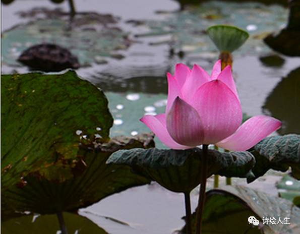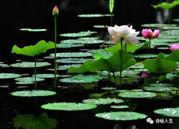 枯荷落叶浮生恨,月照横塘倩影斜。