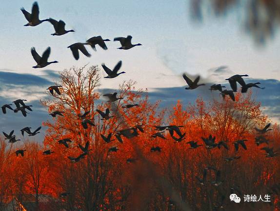 银杏庭中飘落叶,天凉,归雁南飞痛断肠。