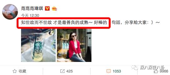 所以hin多网友就觉得这是在搞事情嘛,今天中午范玮琪微博疑似回应似的,发了条:知世故而不世故,才是最善良的成熟~
