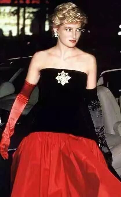 ▲一身黑色低胸连衣裙的戴安娜,眼角眉梢是更加迷人的女性风采,佩戴上她喜爱的蓝宝石珠宝,把这身穿搭拿到今天来看,谁又能说这不是一位复古的摩登潮人呢?
