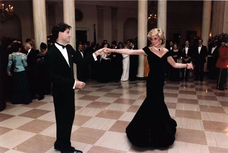 ▲在白宫宴会上戴安娜化身美丽的黑天鹅,与好莱坞影星约翰·特拉沃尔塔翩翩起舞。这也算是最为人熟知的名场面了,就连里根总统也对她称赞有加。