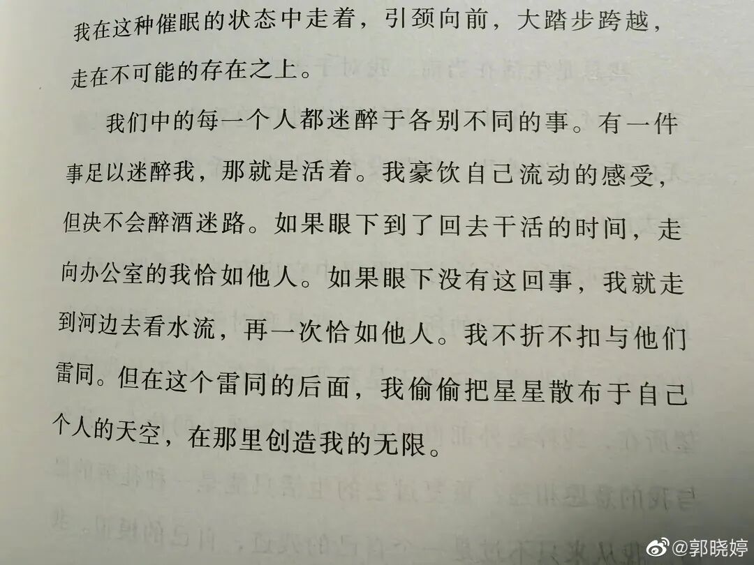 姐妹早茶铺|郭晓婷说,朋友是个很谨慎的词 时尚COSMO 内地女星 2022-08-29 08:30:46 5 创作不易,用心坚持,欢迎请BaGua喝几杯爱心咖啡!打赏并支持本文 打赏并删除本文 ——佩索阿《惶然录》郭晓婷摘于2022年1月22日今年立夏郭晓婷在微博po出了剧组工作照,夏至时候的动态也是在棚里。少时出道,她在剧组度过了一个又一个夏天。“很想去海边冲浪,想游泳,但是一直没有做成”。“很想”的后面,跟着的是无数个省略号。错过一个夏天可以用下个夏天去弥补,那错过了很多个夏天,还能记起夏天的味道吗?“夏天就是被太阳照过的那些青草地的味道,包括洗完的衣服,晒完太阳也会有一种很安心温暖的味道。”因为拍摄的炎热期盼着阴雨天能多点的郭晓婷,谈起太阳还是滔滔不绝。没有晒黑的烦恼,那不如趁着阳光大好,好好进行一下光合作用。在剧组的棚里感受不到日夜变化,外景的阳光成了感知白昼长短的机会。郭晓婷的夏日回忆,是跟着剧组来到每一个新的地点。回忆起《冰雨火》的剧组生活,她对西双版纳的印象:“觉得那是一个很快乐的城市。”别人忙着当傣妹打卡,她和组里的小伙伴去吃云南烧烤,辣成香肠嘴彼此拍照。工作时吃的云南菜,没有玩乐时香。她说等有空了,还要去吃云南菜,还要去版纳玩。郭晓婷喜欢每拍完一部剧就去旅行,这个愿望耽搁了好久,希望没看到的大海,想去的内蒙和新疆,在初秋的to do list上能把“想去”划掉。最近她读的《惶然录》中还有一句话,“秋天突如其来。在秋天最初的一些日子里,似乎有感于我们在白天的劳累里拖延得太长,黑暗到来得有些早。甚至在白日里我们就提前品尝到黑暗里无须工作的愉快。”事业心重的摩羯座也应该给自己放放假。“我习惯了尽早到片场,我的助理就会说你不要一下就弹飞,他们跟不上我。”嗓音甜甜的郭晓婷确实让人很难想到她是如何“弹”,如何“飞”的。在姐妹早茶铺采访陈冠宏的时候,她说郭晓婷的工作状态很迷人。作为一名老戏骨,她习惯了从前《仙剑》剧组严肃谨慎的拍摄现场,会给自己树立条条框框。片场不让等,勇做第一人。工作模式和生活模式的瞬间切换让她能在工作上投入百分百的精力,也能在生活中放松自如。“火”的这条路,她走的不紧不慢,顺其自然。《怪你过分美丽》里的林湘、《驭鲛记》里的顺德仙姬、《苍兰诀》中的赤地女子、《冰雨火》的杨玲2022年看到郭晓婷演的角色,很多人会不免发出这样的感慨“哦,原来是她演的”酒香不怕巷子深,《仙剑奇侠传3》里的小花楹“销声匿迹”了一段时间,杀回了大众视野。去演一个与自己完全相悖的角色需要花更多的时间去准备,演完之后的这份后劲也需要一段时间去消化。从每一个角色走出来再走进去,不设限的选角标准,她在找寻自己更多的可能性。“太阳升起来了,黑暗留在后面。但太阳不是我们的”这是林湘在《怪你过分美丽》第一集出场时的话。这是郭晓婷写给林湘的话。七年之痒:一般是指人们爱情或婚姻生活到了第七年可能会因爱情或婚姻生活的平淡规律,而感到无聊乏味,到达倦怠期,要经历一次危机考验。对于陪伴了自己七年的好友兼助理,这个词被郭晓婷用在了她和“馒头”身上。“当时我就很缺一个助理,就像拉壮丁一样把她给拉过来了”。片场相遇,片场告别,片场再见。从群演到助理,这个极其drama的情节可能连馒头自己都没想到,助理一当就当了七年。默契达成不需要前期沟通,只需要一个眼神,馒头就能给到郭晓婷想要的独处空间。馒头晋升成为妈妈后,就不再协调郭晓婷的片场工作了。助理只是一个时间段的关系,但是朋友可以是一辈子。“像前几天我去西安拍戏的时候,她还带着她的宝宝来西安探我班,觉得还挺奇妙的。”群演这个老本行或许馒头自己都忘的差不多了,但郭晓婷还会记得,在片场张罗着给“馒头”找戏拍。把工作和生活中的人各分一类,是大多数艺人的做法。但是在郭晓婷眼中,同一个人工作时可以是工作伙伴,生活中可以成为朋友。朋友不是按出现在哪个领域分,而是气场合不合,能不能聊的来。对于朋友这个词的谨慎,收获的是真心实意。有一个说法叫“字如其人”。郭晓婷有一手好字,摘录的习惯填补了她生活的空隙。时不时也写些当月的to do list,开启下个月的生活。 ——记于2019年9月1日采访郭晓婷的当晚,初秋凉风袭过,蝉鸣还在抓住最后的夏末,不负夏时。编辑:Yvonne艺人统筹:周小涵设计:nele、甲丙排版:Cancan图文协助:Miu 创作不易,用心坚持,欢迎请BaGua喝几杯爱心咖啡!打赏并支持本文 打赏并删除本文 感谢您的支持鼓励,我会继续努力的!文章地址:用户邮箱:打赏金额:USDT 请输入数字点击”去打赏“,即可进行打赏支持本文章哦 郭晓婷 发表评论