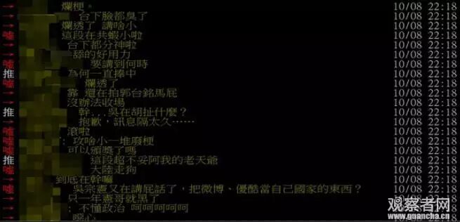吴宗宪的这段话一出,随即引来台湾网友一片骂声,PTT论坛更爆发了一片嘘声。