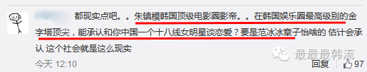 “都现实点吧OK?朱镇模韩国顶级影帝,会和你天朝一个十八线小女星谈恋爱吗?换成范冰冰章子怡才有可能吧?”