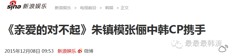 2015年,张俪和朱镇模合作了一部中国电视剧叫《亲爱的对不起》↓