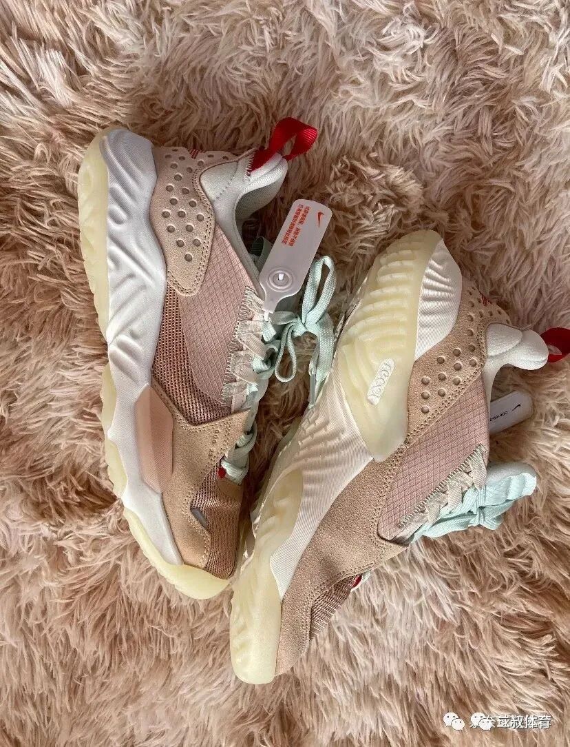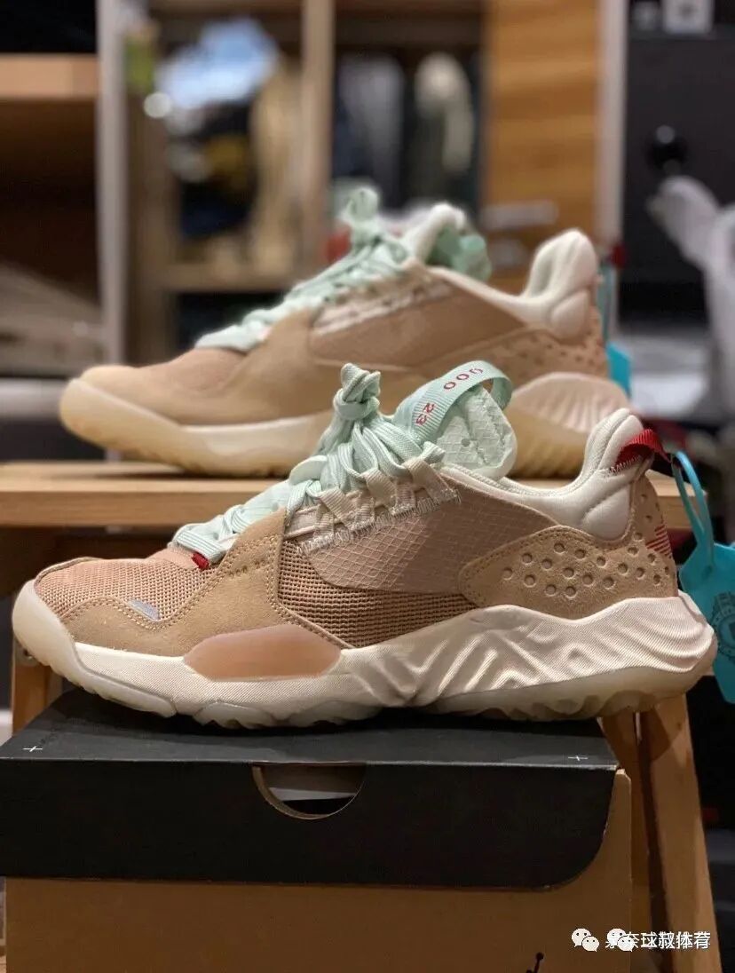 第三双给大家带来的是Air Jordan Delta Vachetta Tan,这双鞋配色上有些与tom sachs x nikeCraft Mars yard 2.0宇航员有些相似。鞋面主要为棕色的工程网眼布和麂皮组成,鞋舌与鞋带是薄荷绿的海绵设计,后跟有一个飞翼的logo,中底采用全掌react,外底是人字形外底,脚感上是十分的舒服。发售时间为2020.5.1