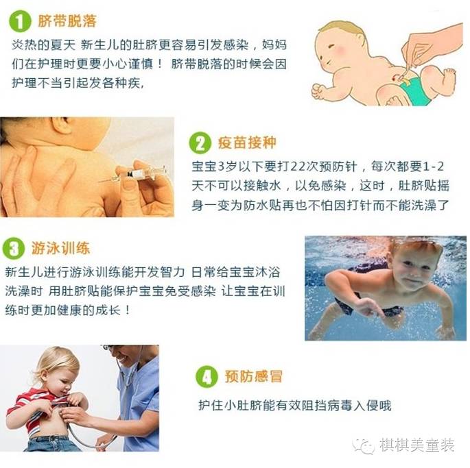 ★☆ 新生儿肚脐还没长好,洗澡要贴住以防感染。一般两周内肚脐会脱掉,没脱掉前要注意保护。