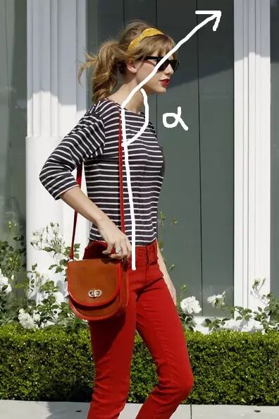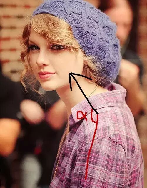 我们可以观察到,Taylor的颈部和她的身体总成一定角度,她的脖子总是往前倾的。