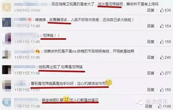 就有某知名博主爆料:芒果台的双十一晚会上有台湾女艺人耍大牌被封杀!