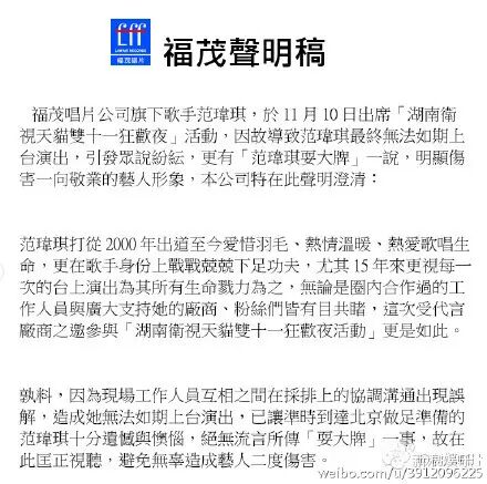 范玮琪所在的福茂公司也发布声明,说绝无耍大牌的情况