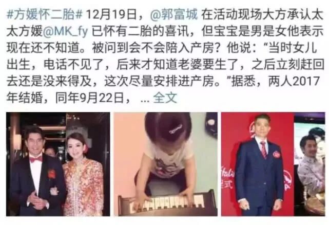 早在去年年底,郭富城就承认妻子方媛怀上二胎,当时记者送上祝福时,郭富城表示目前还不知道是男还是女。