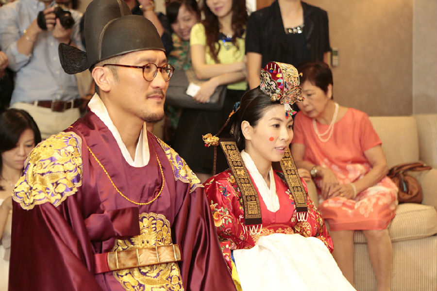 腾讯娱乐讯 据台湾媒体报道,39岁的许茹芸去年11月与韩国丈夫崔栽诚登记结婚,男方是SM经纪公司广告部高层。今天中午,两人在首尔举行了传统韩式奉茶仪式,除了双方亲族,杨采妮、李心洁等明星都出席了婚礼。