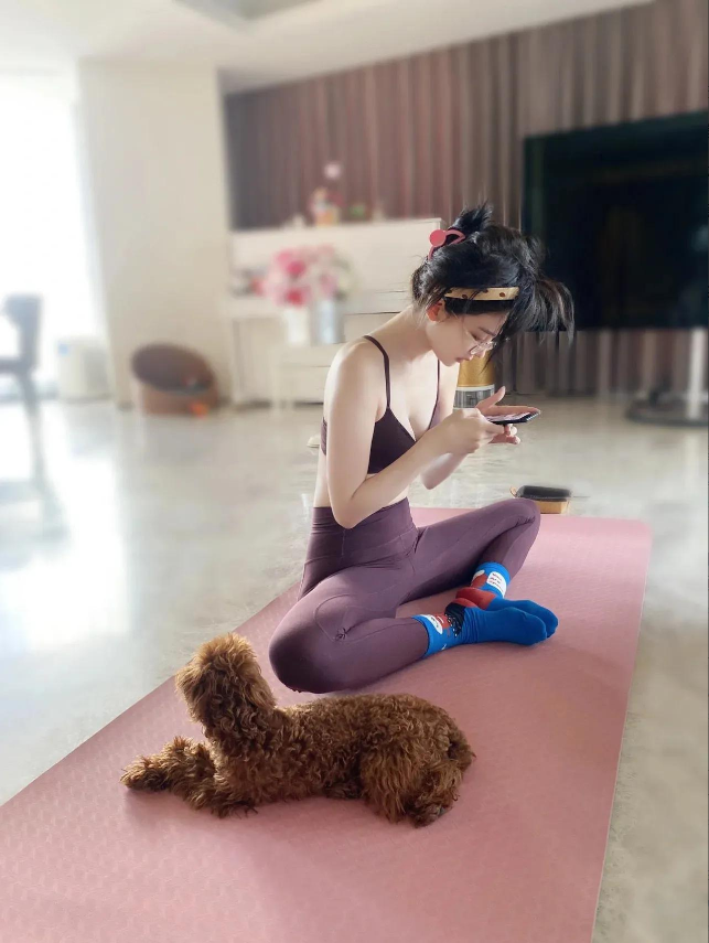 :灰色运动背心配粉色瑜伽裤,或是全黑训练服——贴身面料将肌肉的起伏、关节的伸展悉数勾勒。没有宽松衣物遮掩,86斤的体重下仍能看见紧实的臀腿曲线,印证了“瘦而有肉”的健康审美。 - 反差感制造记忆点