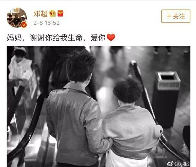 邓超十分的爱自己的妈妈,经常晒出和妈妈的合照。