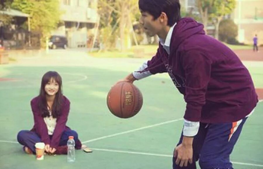 在同学都去好好自习时,哩哩经常一个人躲在篮球场外面,趴着贴网丝上,看着暗恋许久的「男神」,每当「男神」投进一个球时,哩哩会偷偷的窃喜,脑海里都是和他恋爱的情景。