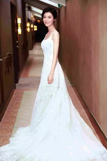 车晓身穿白色低胸晚礼服,这身晚礼服是拖地设计,给人一种从古堡里走出来的公主一样,越是简单的设计就越能体现出穿着的气质,车晓完完全全把这件晚礼服穿出了自己的感觉。