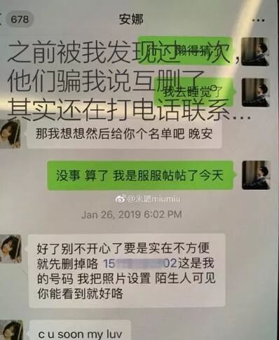这位用户似乎就是男方的女友,截图出来的照片也是时男方这边的手机端,内容就是男方和姗姗的聊天,两人的关系看得出来就是超过友谊的,而且她似乎也知道男方就不是单身状态。